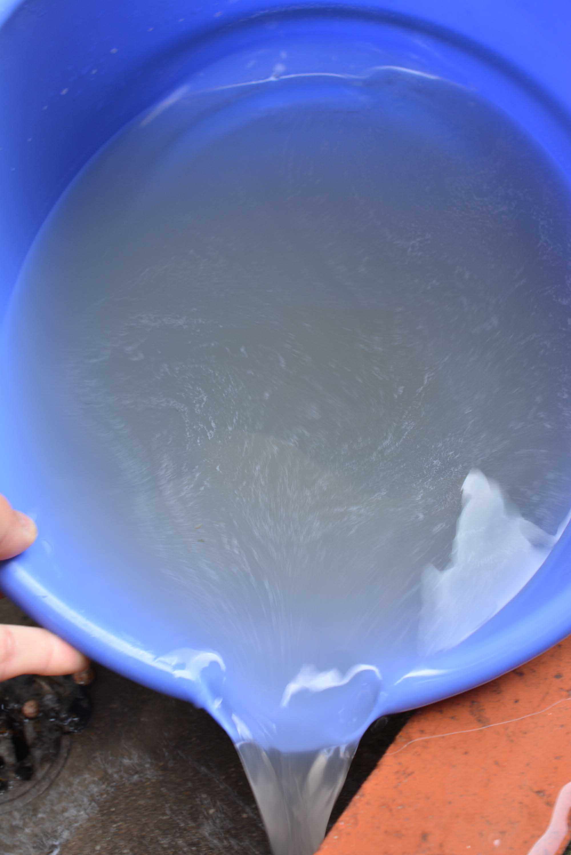 汚れを落とした後の洗剤液です。頑張ってくれました。泡がもう立たない状態です。