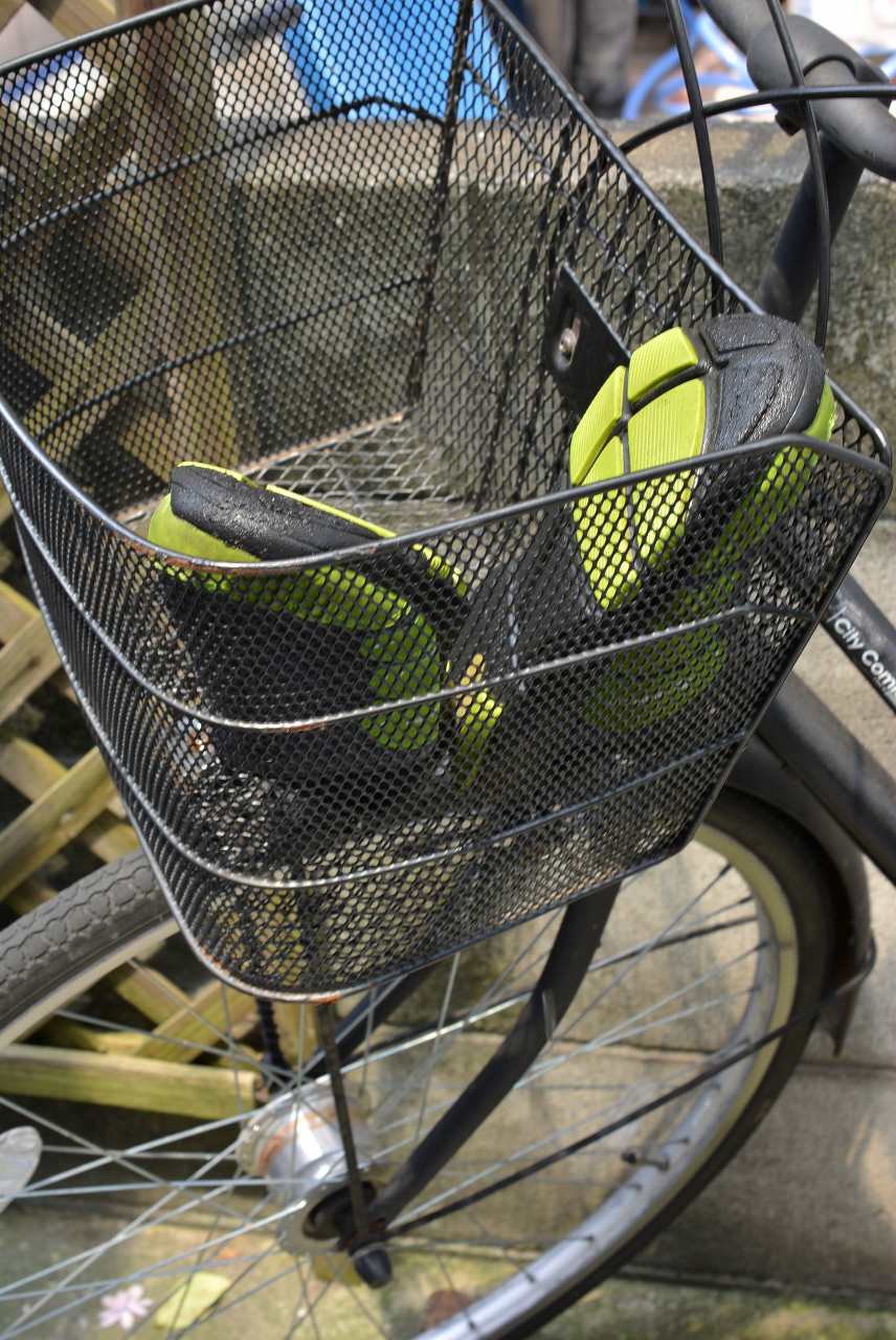 だいたい、10分ぐらいが目安でしょうか。汚れの具合にもよりますが、せっかく洗える機会に、汗汚れを落とし切りたいものです。上の写真で、いったんサンダルを取り出しました。