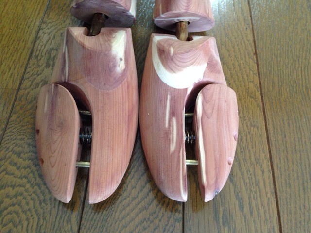 それでは、お手入れへ。まずは、ブーツツリーを入れましょう。そして、問題の個所をもう一度確認。ボコボコとキズが出来ております。