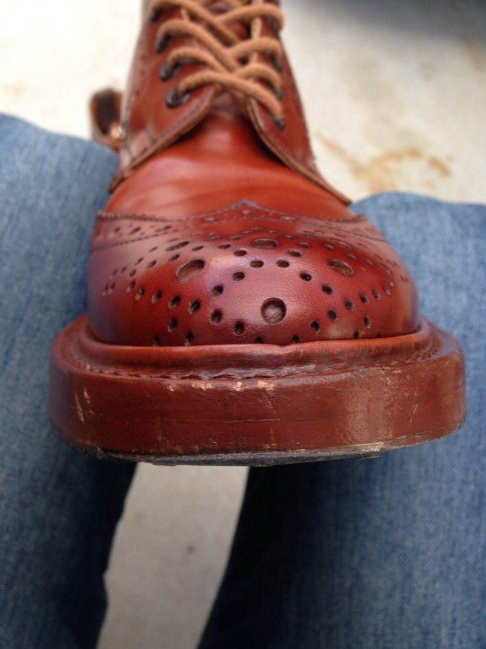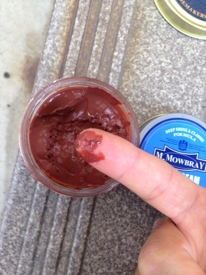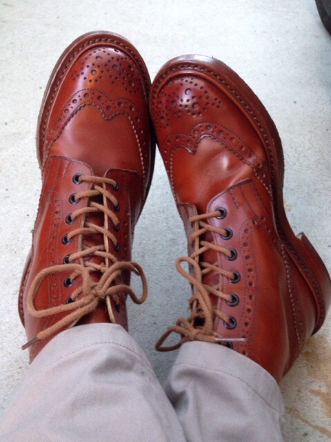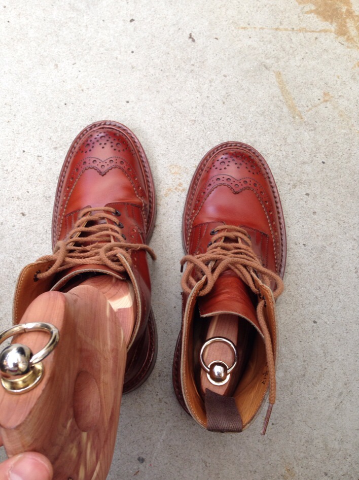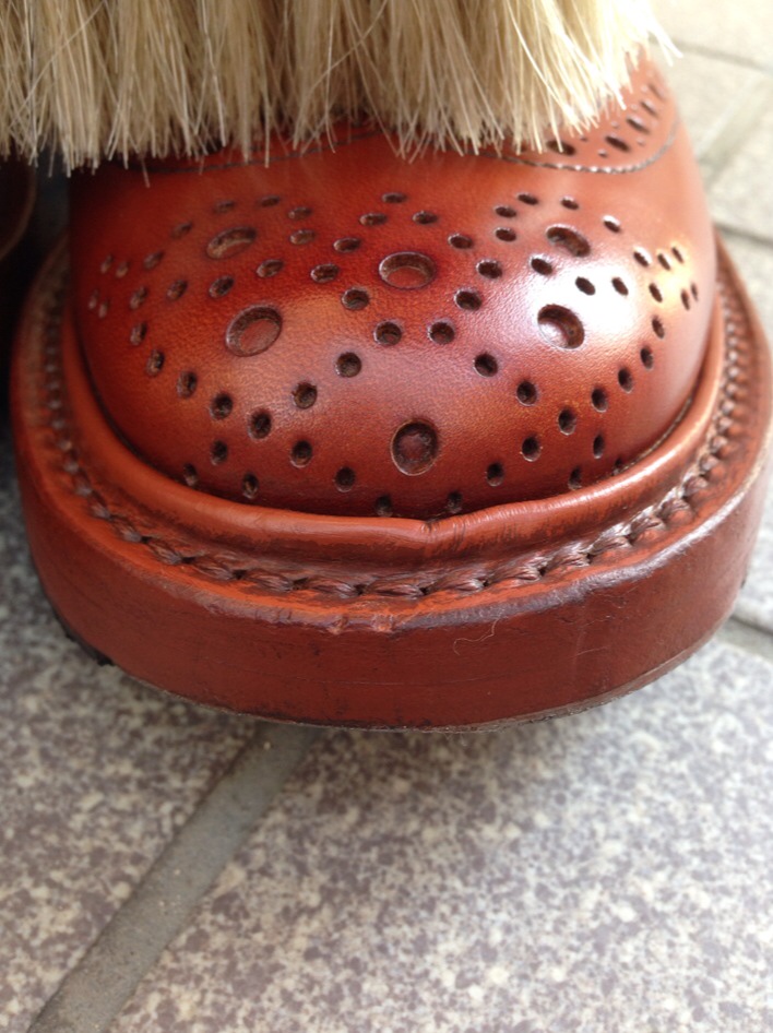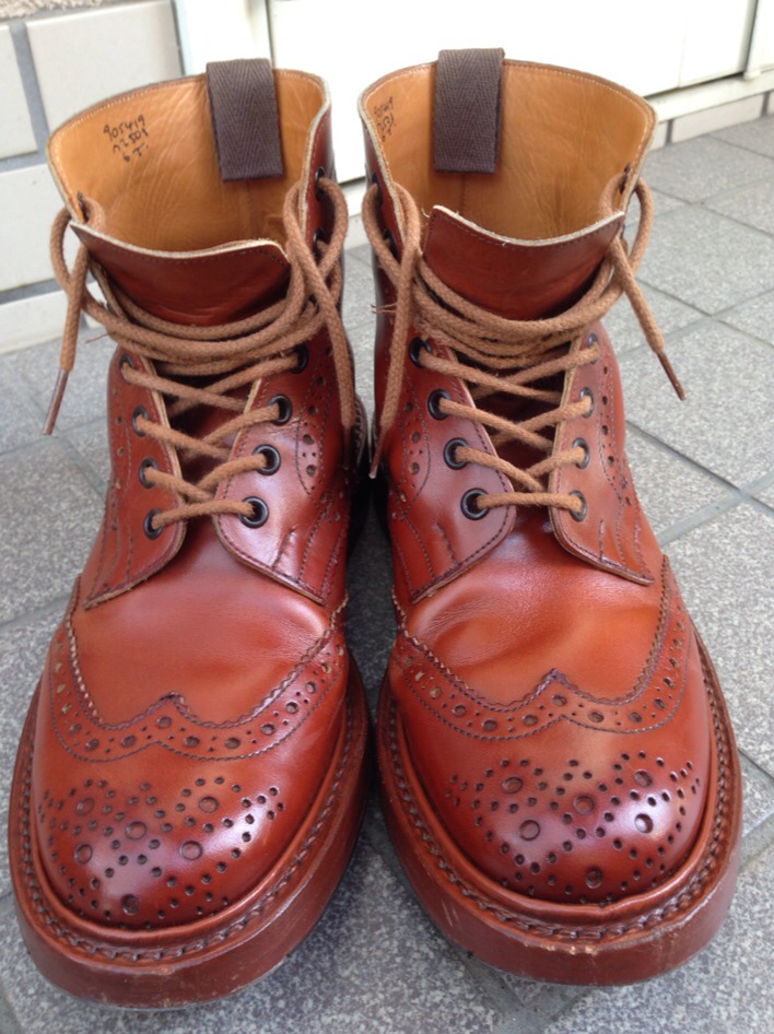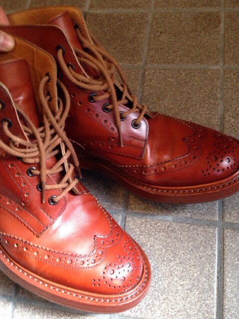 革靴の色によって、対処が少し変わります。今回取り上げるのは、少し続きますがトリッカーズ(Tricker's)のマロンアンティークです。
