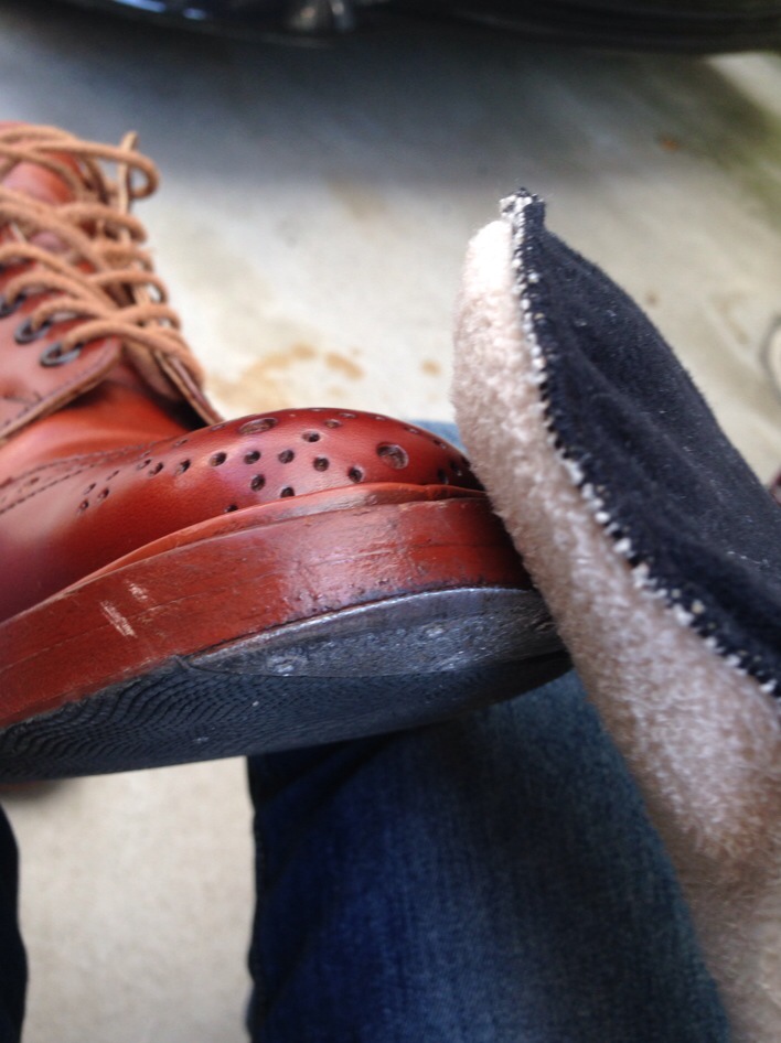 チペワのブラックオデッサリバース(黒)6インチプレーンブーツはさすがに季節感が合わないので、トリッカーズを履く頻度が増えたような気がします。