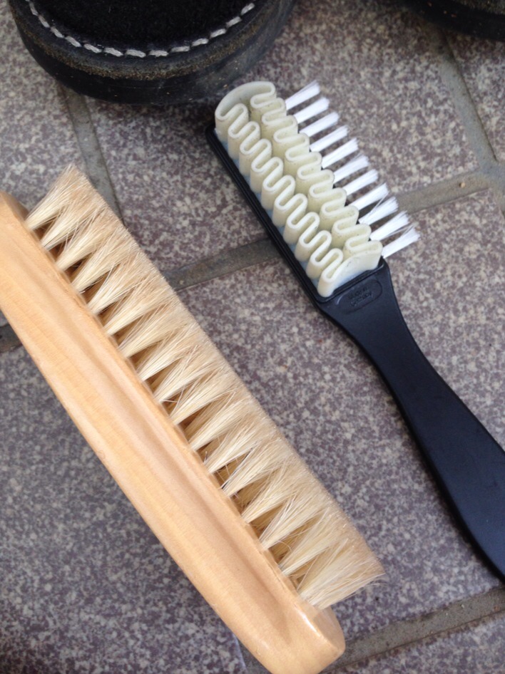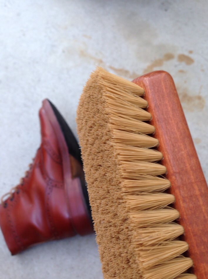 茶系の革靴、ブーツの不本意なキズは、ある日突然できます。できるだけ、その日のうちに手入れされることをお勧めします。そのためにも、普段からシューケア用品は充実させておきたいですね。