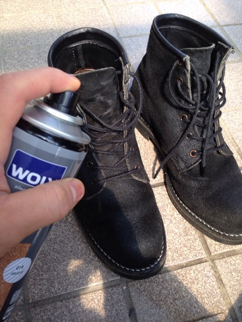 まず、即効性があるのはWOLY社の防水スプレーでした。(1年目~3年目ぐらいまで使用)