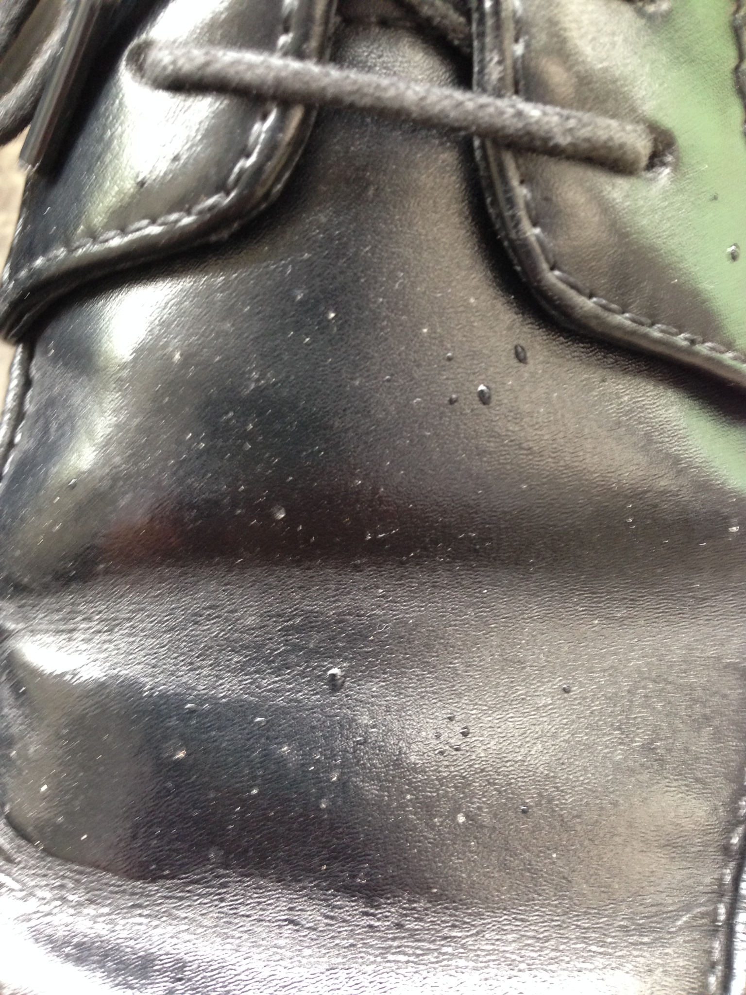 そして、ザーザー雨が降っている状況で防水スプレーをしているからと言って、革靴がダメージを受けないかというとそうではありません。少なからずダメージは受けます。問題はダメージを少なくして事後の処理を簡単にすることではないかと。。