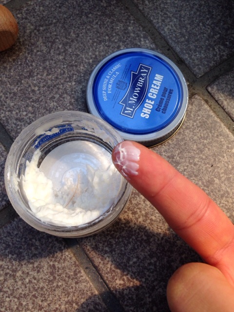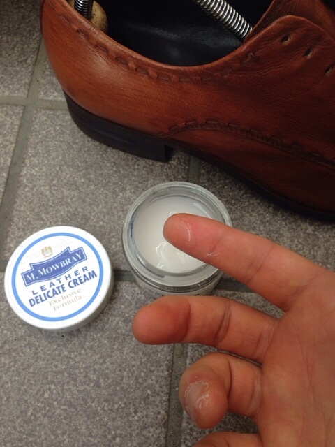 デリケートクリームの成分はほぼ水分です。伸びるのが早いので、ある程度伸ばしてから指で入れ込む、押し込む感じですると、靴に入れるクリームの量が分かるでしょう。入れすぎには注意してください。