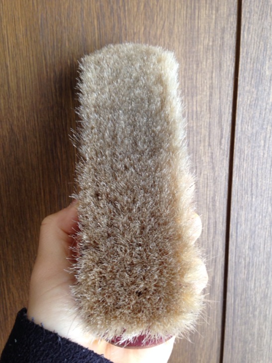 ちなみにこの馬毛ブラシの長さは、タテ17cm、ヨコ6cmでした。