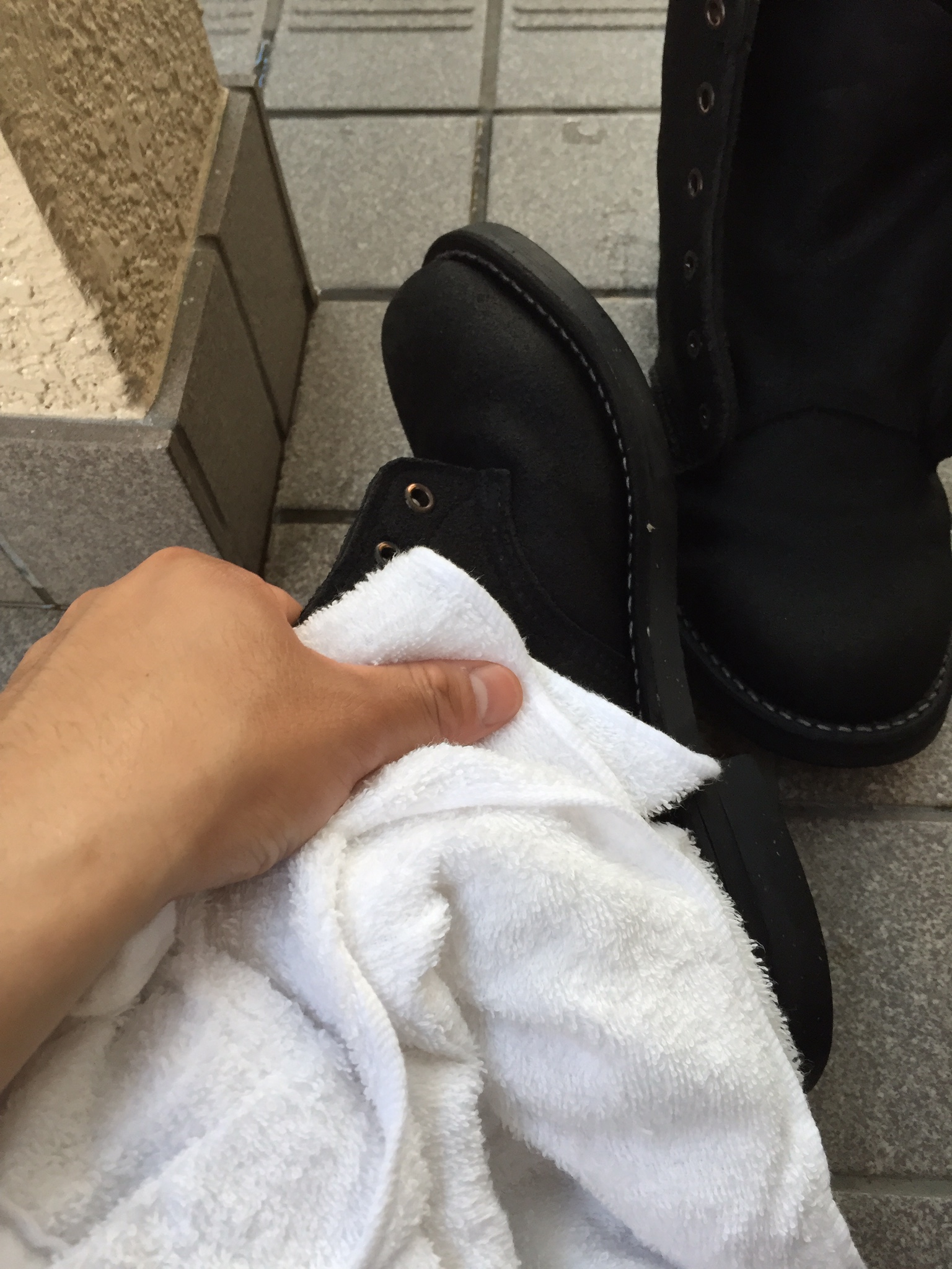 管理人は、革靴に暖かい息を吐きかけてすぐになでるようにブラシをかける、もしくはクロスをかけるを良く実施します。ワックスを使用したハイシャイン(鏡面磨き)の際にもこの方法を適用することができます。